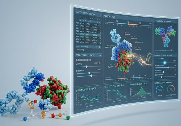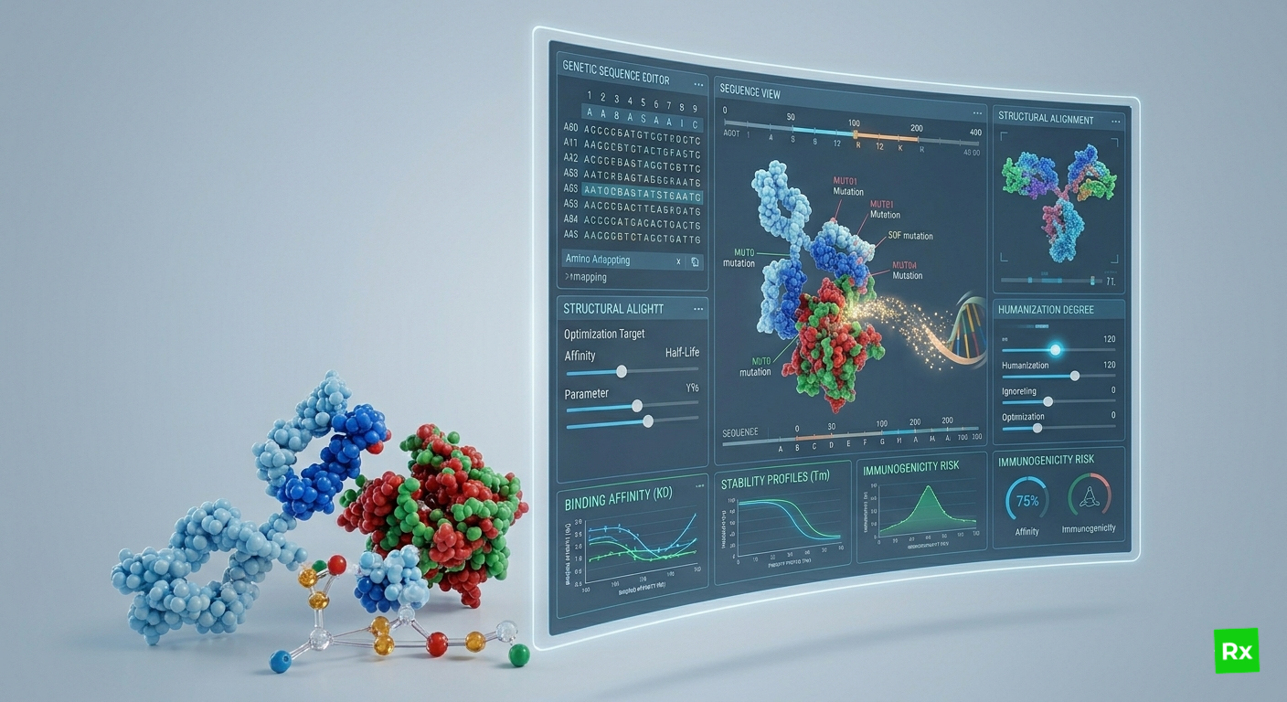 The Receptorix Design Tool is a browser-based workspace built specifically for biologics — not generic molecular editors. Assemble domain architectures visually, auto-generate sequences, optimize codons for your expression system, check restriction enzyme compatibility, and use AI-generated sequences directly into the workflow. Every output is bench-ready.